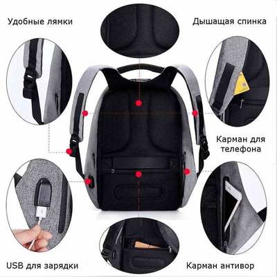 - обладает уникальной системой "антивор", которая защитит рюкзак от порезов и краж;