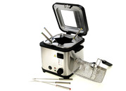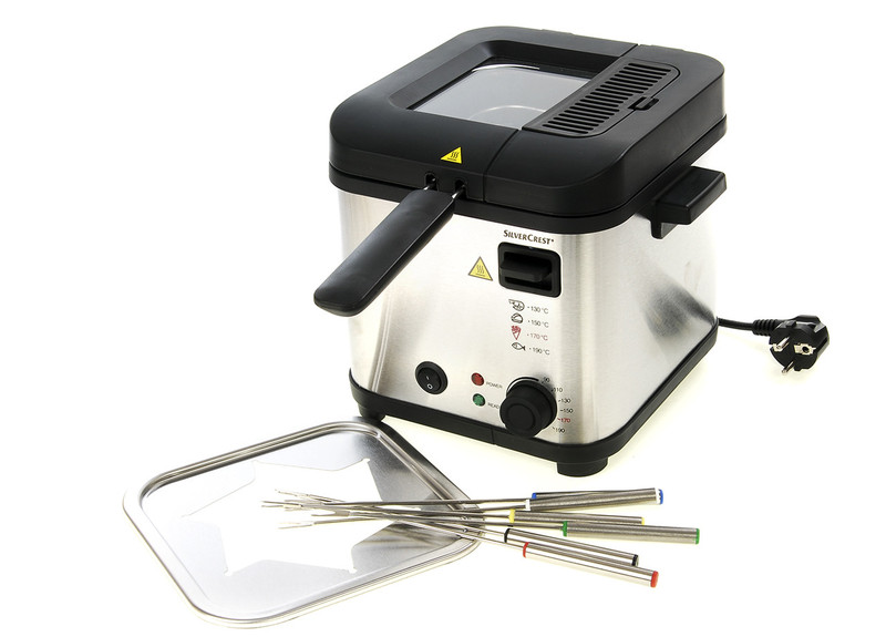 Фритюрница 850 W Питание от сети 220-240 W Температура плавно регулируется до 190 ° C Корзина из нержавеющей стали - безопасна для посудомоечной машины Размеры: 26 x 24 x 21 см. Вместимость: не более 1,5 л.