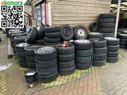 В асортименті шини та диски 100 шт. (50 шт. стальні і 50 шт. титанові литі) різних розмірів, комплекти, пари та одиночки.