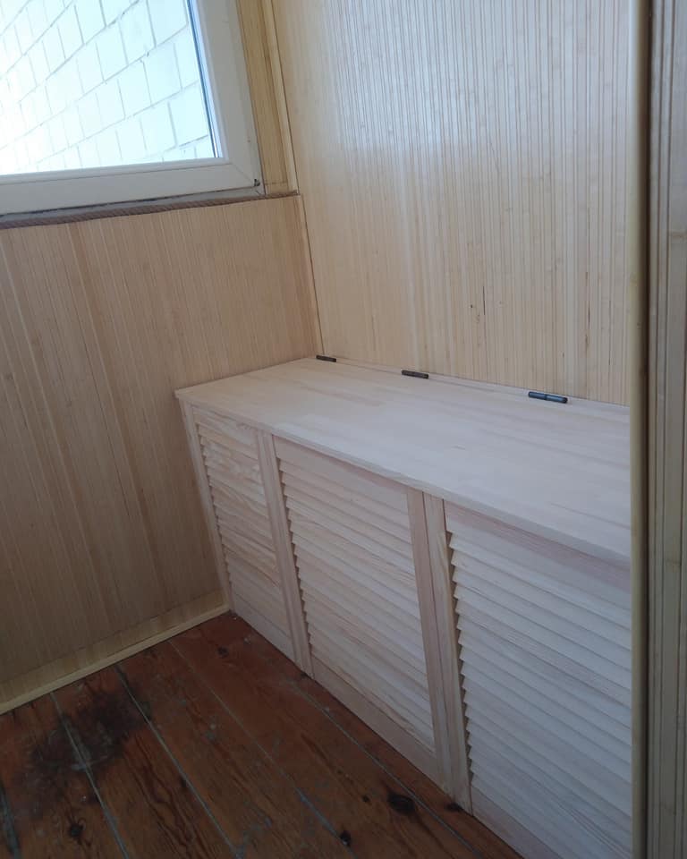 шкаф на балкон из Дверей Жалюзи, подбор дверей по размеру в разных комбинациях по высоте и ширине а также все сопутствующие столярные работы