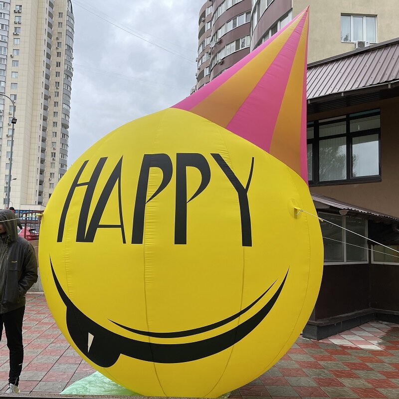 Надувные шары пошиты ручным способом, материал – полиэстер с полиуретановым покрытием. Методом сублимации красителя нанесем на шар информацию о: