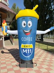 • нанесение на рекламного человечка информации, методом сублимации красителя — контакты, локация, меню, акционные предложения