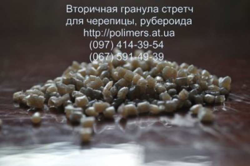 Предприятие на постоянной основе продает вторичную гранулу стретч для производства черепицы, рубероида. Гранулы темного цвета, возможно присутствие в небольших порциях ПС и ПЭНД. Фасовка: мешки по 30 кг.